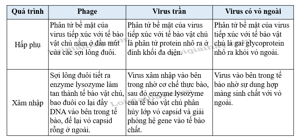 Câu 1 (2 điểm): Hãy phân biệt quá trình hấp phụ, xâm nhập vào tế bào vật chủ của phage, virus trần và virus có vỏ ngoài.