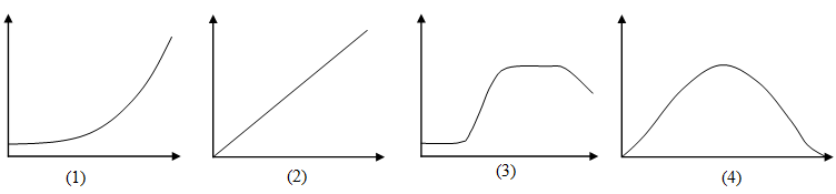 Câu 8: Trong các đồ thị dưới đây, đồ thị nào biểu diễn đường sinh trưởng của quần thể vi khuẩn trong nuôi cấy không liên tục?