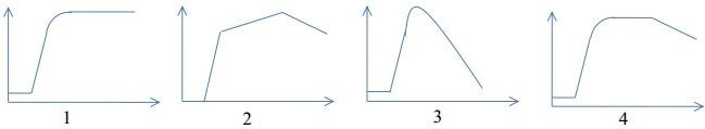 Câu 12: Quan sát các hình sau, hình nào mô tả đúng đường cong sinh trưởng của quần thể vi khuẩn trong nuôi cấy không liên tục?