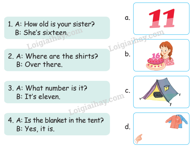 2. A: Where are the shorts? (Những cái quần đùi ở đâu vậy?)