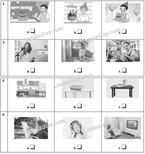 Listen and circle a or b. Listen and tick. Read and write Y (Yes) or N (No). Read and complete.