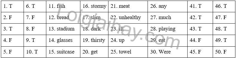Đáp án T