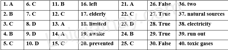 IIII. Choose the best option (A, B, C or D) to complete each of the following questions.