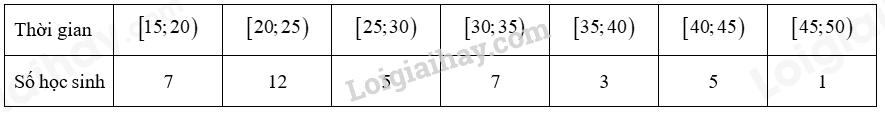 Cho mẫu số liệu về thời gian (phút) đi từ nhà đến trường của một số học sinh như sau: