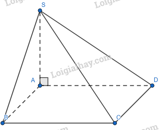\(\left\{ \begin{array}{l}CD \bot AC\,\,\left( {cmt} \right)\\CD \bot SA\,\,\,\left( {do\,\,SA \bot \left( {ABCD} \right)} \right)\end{array} \right. \Rightarrow CD \bot \left( {SAC} \right).\)