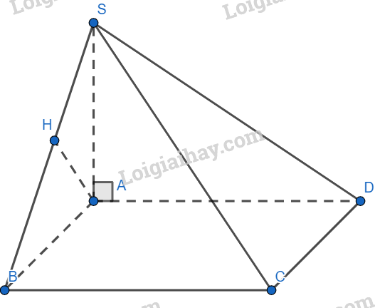 c)Ta có: \(\left\{ \begin{array}{l}BC \bot AB\\BC \bot SA\\AB,SA \subset (SAB)\end{array} \right. \Rightarrow BC \bot (SAB)\) mà \(AH \subset (SAB) \Rightarrow AH \bot BC\)