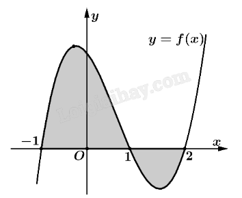 \(S = \int\limits_{ - 1}^2 {\left| {f(x)} \right|dx} = \int\limits_{ - 1}^1 {f(x)dx} - \int\limits_1^2 {f(x)dx} \).
