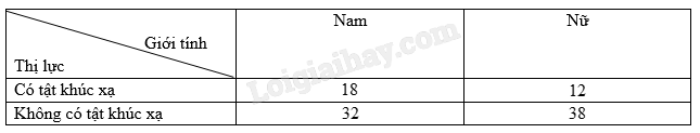 Có 18 + 12 = 30 học sinh bị tật khúc xạ nên \(P(A) = \frac{{30}}{{100}} = 0,3\).