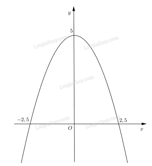 \(\left\{ \begin{array}{l}5 = a{.0^2} + b.0 + c\\0 = a.2,{5^2} + b.2,5 + c\\0 = a.{( - 2,5)^2} + b.( - 2,5) + c\end{array} \right. \Leftrightarrow \left\{ \begin{array}{l}a = - \frac{4}{5}\\b = 0\\c = 5\end{array} \right. \Rightarrow y = - \frac{4}{5}{x^2} + 5\).