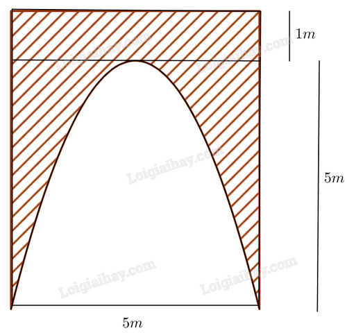 Diện tích lối vào giới hạn bởi cổng là: \({S_1} = \int\limits_{ - 2,5}^{2,5} {\left( { - \frac{4}{5}{x^2} + 5} \right)dx} = \frac{{50}}{3}\) \(\left( {{m^2}} \right)\).