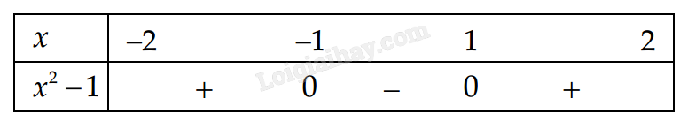 Cho \(f\left( x \right) = 0 \Leftrightarrow {x^2} - 1 = 0 \Leftrightarrow \left[ \begin{array}{l}x = - 1 \in \left[ { - 2;2} \right]\\x = 1 \in \left[ { - 2;2} \right]\end{array} \right.\)