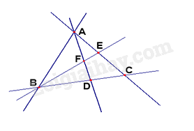 Các bộ ba điểm thẳng hàng trong hình là: (A, E, C), (A, F, D), (B, F, E), (B, D, C).