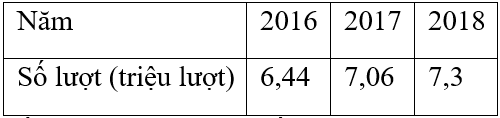 Câu 1: Cho bảng thống kê số lượt khách du lịch (ước đạt) đến Ninh Bình trong các năm 2016, 2017, 2018:
