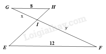 Cho $\Delta GHI\backsim \Delta FEI$ có các kính thước như hình vẽ, khi đó tỉ số độ dài của y và x bằng: