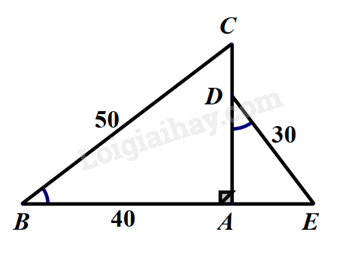 Cho hình vẽ sau, biết \(\widehat B = \widehat D,BC = 50cm,AB = 40cm,DE = 30cm\). Độ dài đoạn thẳng AD là: