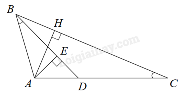 c) Gọi AH là đường cao của \(\Delta ABC\), AE là đường cao của \(\Delta ABD\). Chứng minh rằng diện tích \(\Delta ABH\) gấp 4 lần diện tích \(\Delta ADE\).
