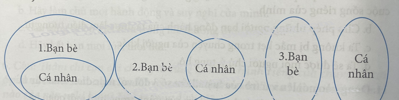 Câu 1: Cho 3 mô hình sau đây thể hiện mối quan hệ giữa cá nhân với bạn bè, em hãy a. Đặt tên cho từng mô hình b. Em lựa chọn mô hình nào, mối quan hệ nào? Nêu 2 lí do |