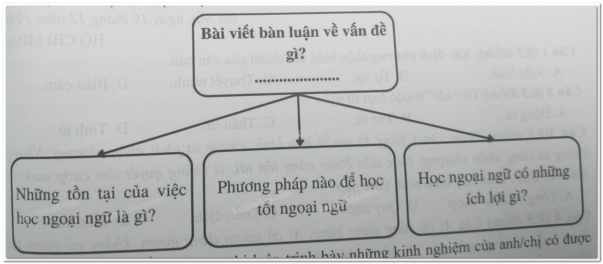 Câu 7: Viết bài văn nghị luận trình bày những kinh nghiệm của anh/ chị có được để học tốt ngoại ngữ |