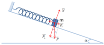 | Một quả nặng khối lượng m = 100 g được gắn vào một lò xo có độ cứng 20 N/m. Hệ trên được bố trí trên mặt phẳng nghiêng không ma sát với góc nghiêng α = 30o so với phương ngang. Biết gia tốc rơi tự do là 10 m/s2. Tính độ biến dạng của lò xo khi quả nặng nằm cân bằng |