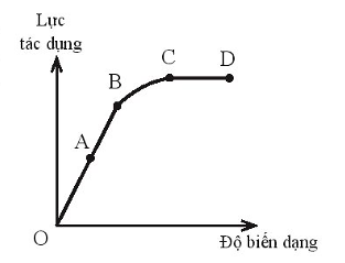 Hình vẽ mô tả đồ thị lực tác dụng độ biến dạng của một vật rắn. Giới hạn đàn hồi của vật là điểm nào trên đồ thị?