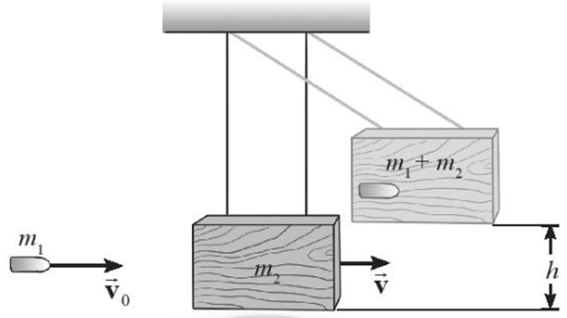 \(V = \frac{{m{v_0}}}{{(m + M)}}{v_0} = \frac{{(M + m)V}}{m} = \)198,99 m/s