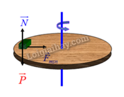 Lực đóng vai trò lực hướng tâm là hợp lực của trọng lực tác dụng lên vật, phản lực của đĩa và lực ma sát nghỉ.