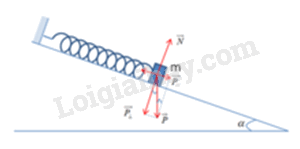 Ta có, tại vị trí cân bằng, lực đàn hồi của lò xo cân bằng với thành phần \(\overrightarrow {{P_{//}}} \) của vật: