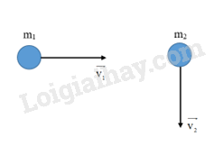 Hai viên bi có khối lượng 2 g và 3 g chuyển động trên mặt phẳng nằm ngang không có ma sát với tốc độ 6 m/s và 4 m/s theo hai phương vuông góc như hình vẽ.