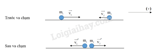 Trước va chạm: \(p = {m_1}{v_1} - {m_2}{v_2}\)