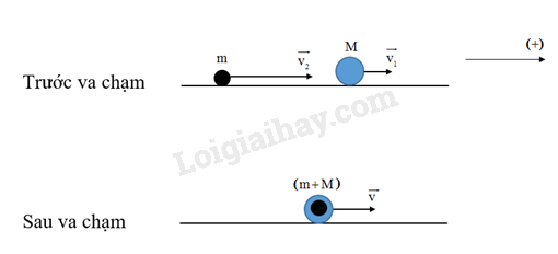 Trước va chạm: \(p = M{v_1} + m{v_2}\)