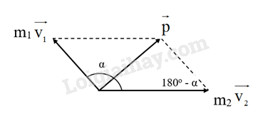 Do véc tơ động lượng của 2 vật tạo với nhau một góc α. Nên độ lớn động lượng của hệ tính bởi định lý hàm số cos: