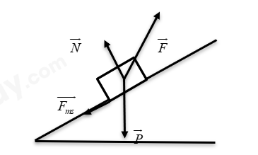 Các lực tác dụng: \(\overrightarrow P ,\overrightarrow F ,\overrightarrow N ,\overrightarrow {{F_{ms}}} \)