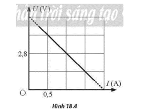 Trong việc thiết kế các mạch điện, để có được các suất điện động thích hợp người ta thường tiến hành ghép các nguồn có sẵn thành các bộ nguồn có suất điện động cần thiết. Xét bốn pin giống nhau được mắc nối tiếp thành bộ nguồn, rồi mắc hai đầu một biến trở vào hai đầu bộ nguồn thành mạch kín. Điều chỉnh giá trị biến trở, đồ thị biểu diễn sự phụ thuộc của điện áp hai đầu bộ nguồn U vào cường độ dòng điện I trong mạch như Hình 18.4. Tìm suất điện động của mỗi pin.