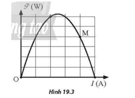Một biến trở được mắc vào hai cực của một nguồn điện không đổi có điện trở trong 2,0Ω. Khi thay đổi giá trị biến trở, ta thu được đồ thị biểu diễn sự phụ thuộc của công suất toả nhiệt trên biến trở vào cường độ dòng điện chạy trong mạch như Hình 19.3. Bỏ qua điện trở của các dây nối. Giá trị biến trở tương ứng với điểm M trên đồ thị bằng bao nhiêu?