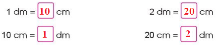 Áp dụng cách chuyển đổi: 1 dm = 10 cm hay 10 cm = 1 dm.