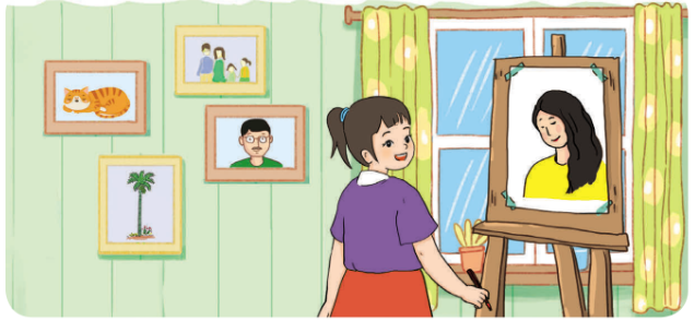 b) Bống thường vẽ những người thân, những vật gần gũi với bạn ấy.