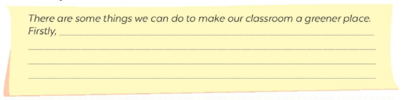 3. You and your friends in class want to make your classroom a greener place. Write a paragraph to tell what you can do. Use the ideas you have in 2.