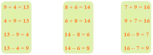 6 + 7 = 13 13 – 5 = 8 9 + 7 = 16