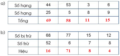 Tính nhẩm kết quả các phép cộng theo các cách đã học hoặc dựa vào bảng cộng, sau đó tính nhẩm kết quả các phép trừ dựa vào kết quả các phép cộng vừa tìm được.
