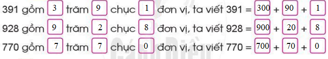 b) Xác định chữ số ở các hàng trăm, chục, đơn vị rồi viết số đã cho thành tổng.
