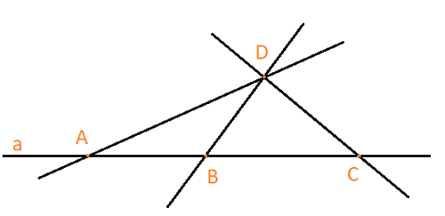Vẽ đường thẳng a. Lấy ba điểm A, B, C thuộc a và điểm D không thuộc a. Kẻ các đường thẳng đi qua các cặp điểm.