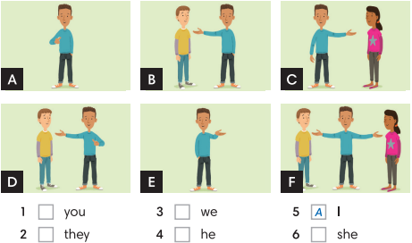 1. Match pictures A-F with subject pronouns 1- 6.
