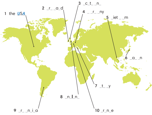 1. Complete the names of the countries.