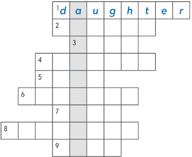 3. Find eight family members in the word search.