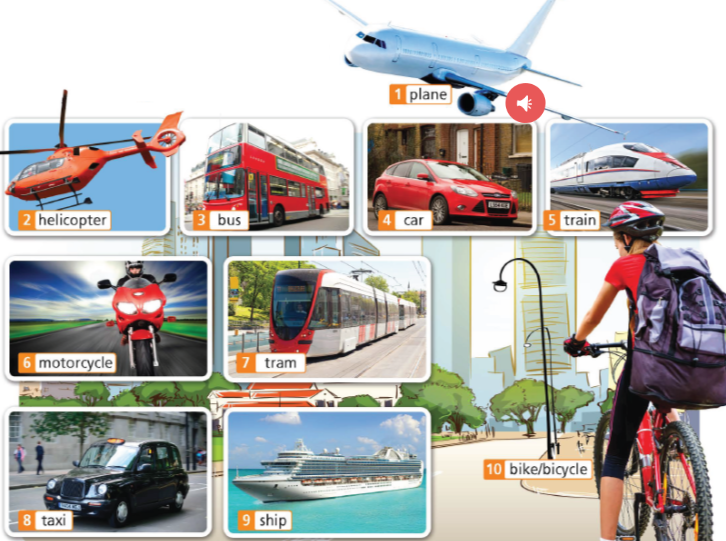 4. Listen to the sounds. Which of the means of transport in Exercise 3 can you hear?