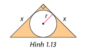 Diện tích phần được tô màu: \(S = \frac{1}{2}x.x - 4.3,14.{r^2}\)