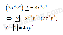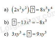 Tìm mỗi đơn thức thích hợp cho mỗi ô:
