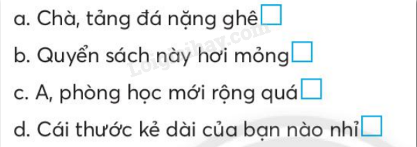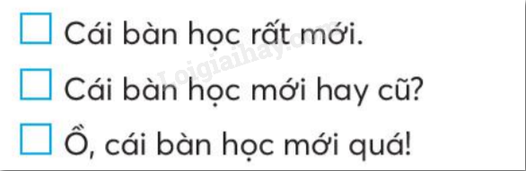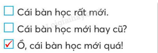 Đánh dấu vào ô trống trước câu thể hiện cảm xúc của bạn nhỏ khi thấy chiếc bàn học mới.