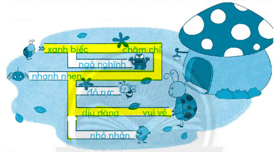 Em quan sát và tô màu vào đường đi để bọ rùa có thể về với mẹ