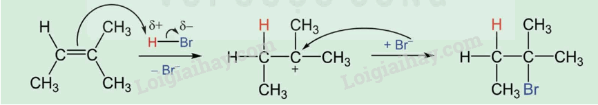 Phản ứng 1: (CH3)2C=CHCH3 + HBr \( \to \) (CH3)2CBr-CH2CH3